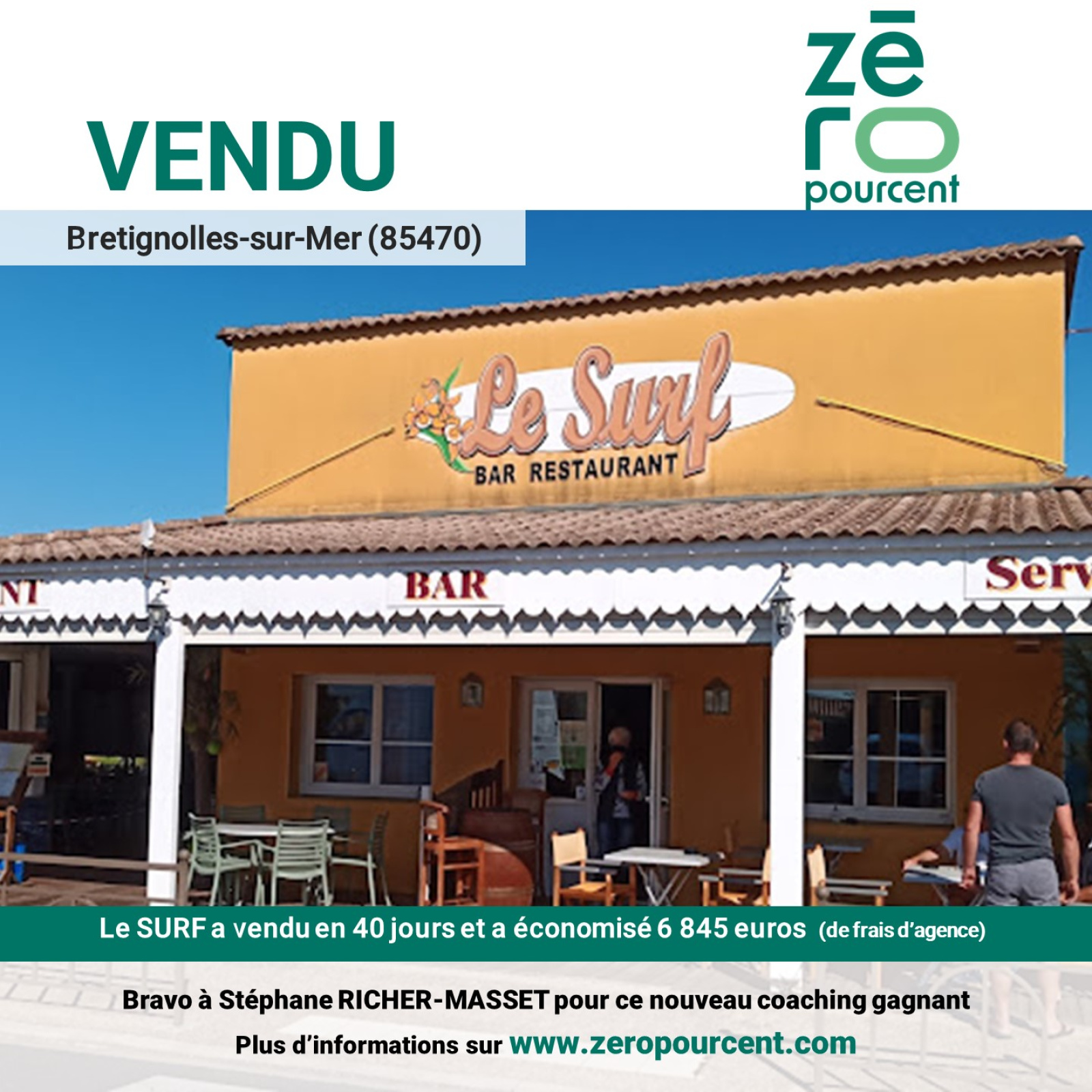 Bretignolles-sur-Mer (85470)Le SURF a vendu en 40 jours et a économisé 6 845 euros (de frais d’agence)
