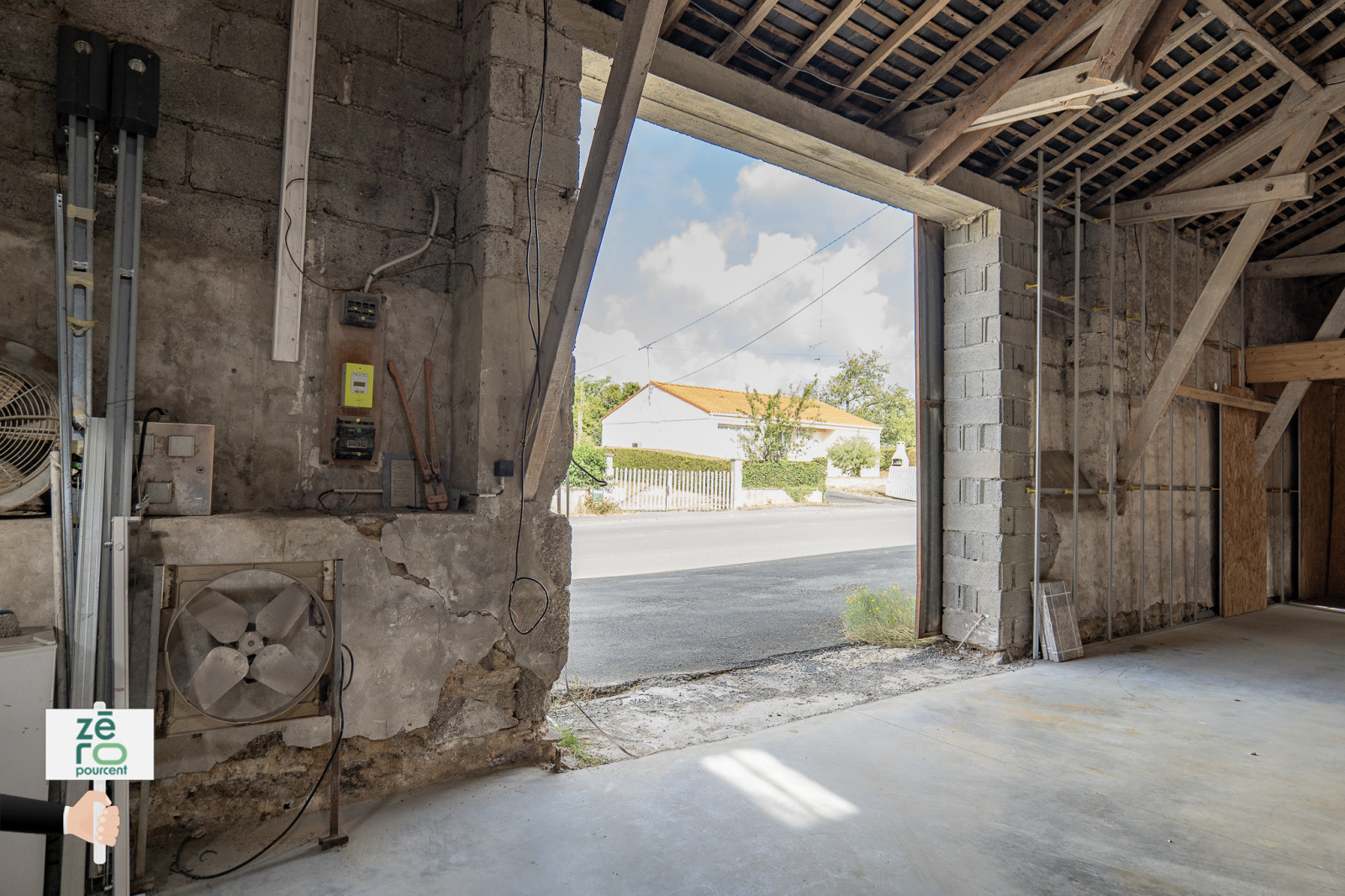 Le bien bénéficie : d’un espace de parking à l’avant pour plusieurs véhicules, d’une structure polyvalente avec volume généreux, de l’électricité déjà installée, d’un accès à l’eau possible facilement.