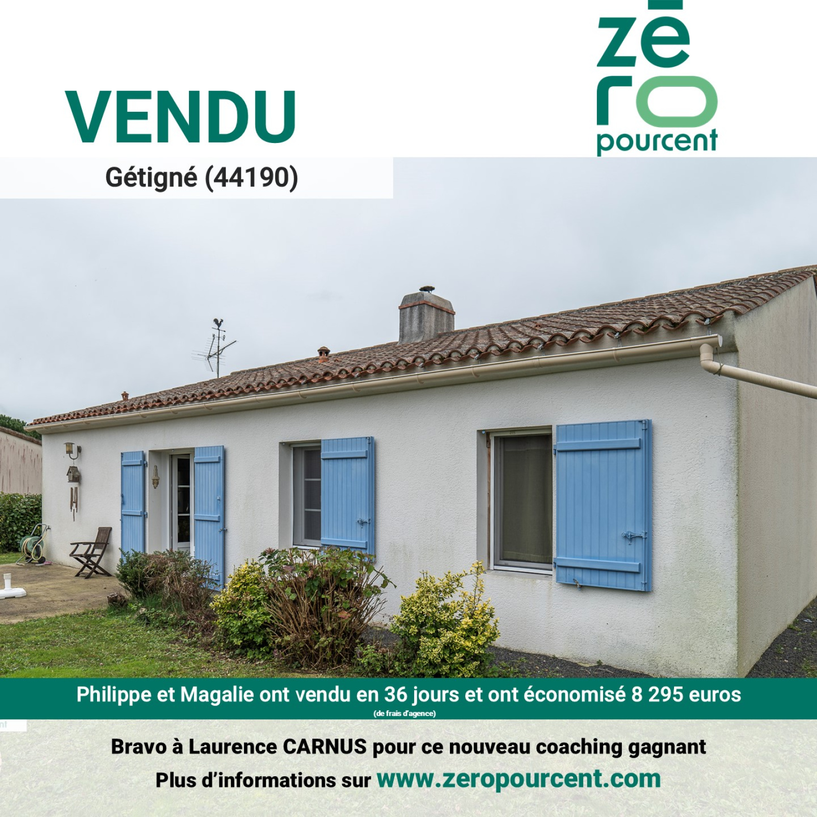 Gétigné (44190)Philippe et Magalie ont vendu en 36 jours et ont économisé 8 295 euros