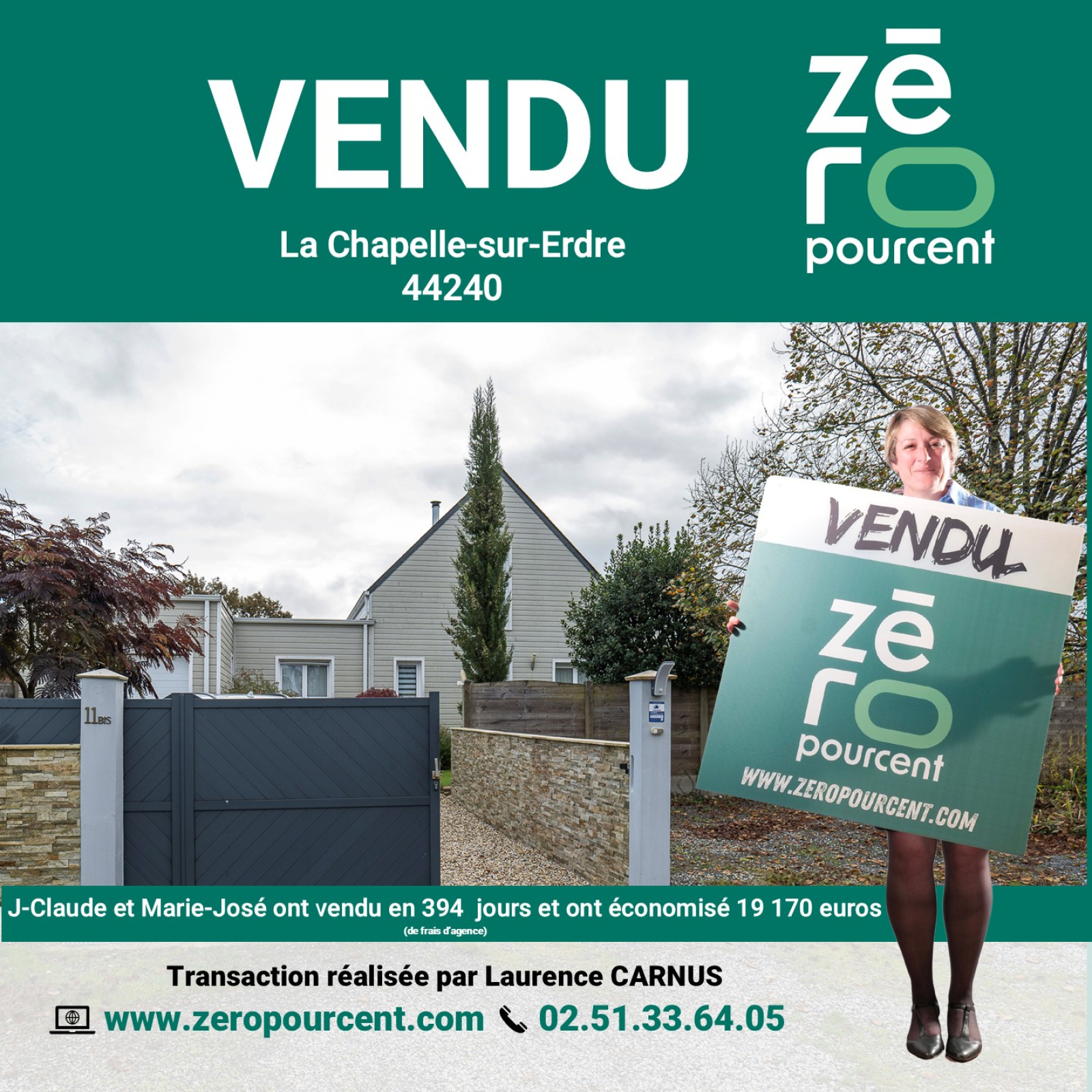 La Chapelle-sur-Erdre (44240)J-Claude et Marie-José ont vendu en 394 jours et ont économisé 19 170 euros