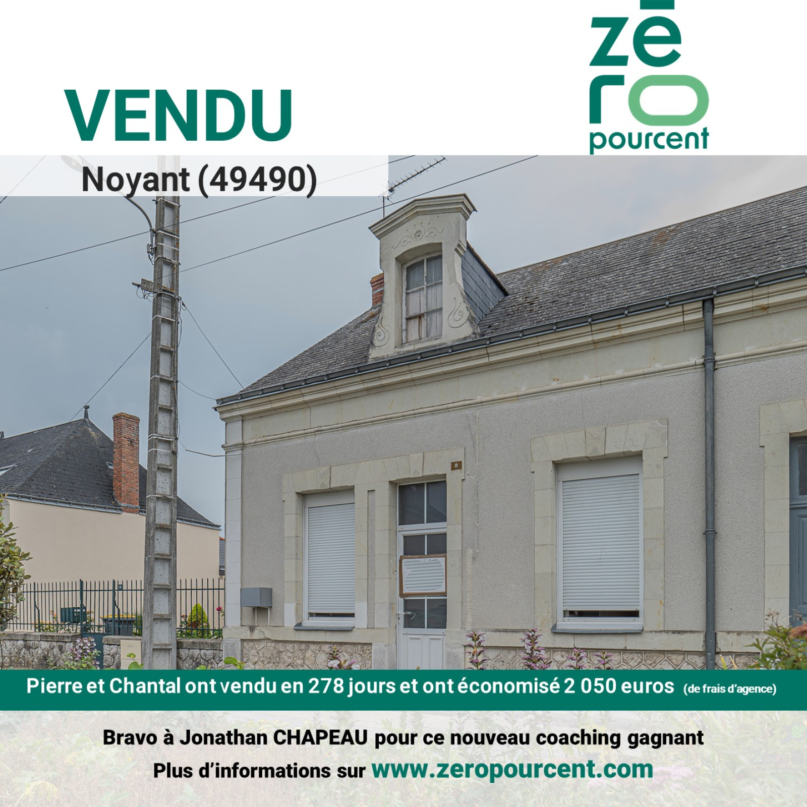 Noyant (49490)Pierre et Chantal ont vendu en 278 jours et ont économisé 2 050 euros (de frais d’agence)