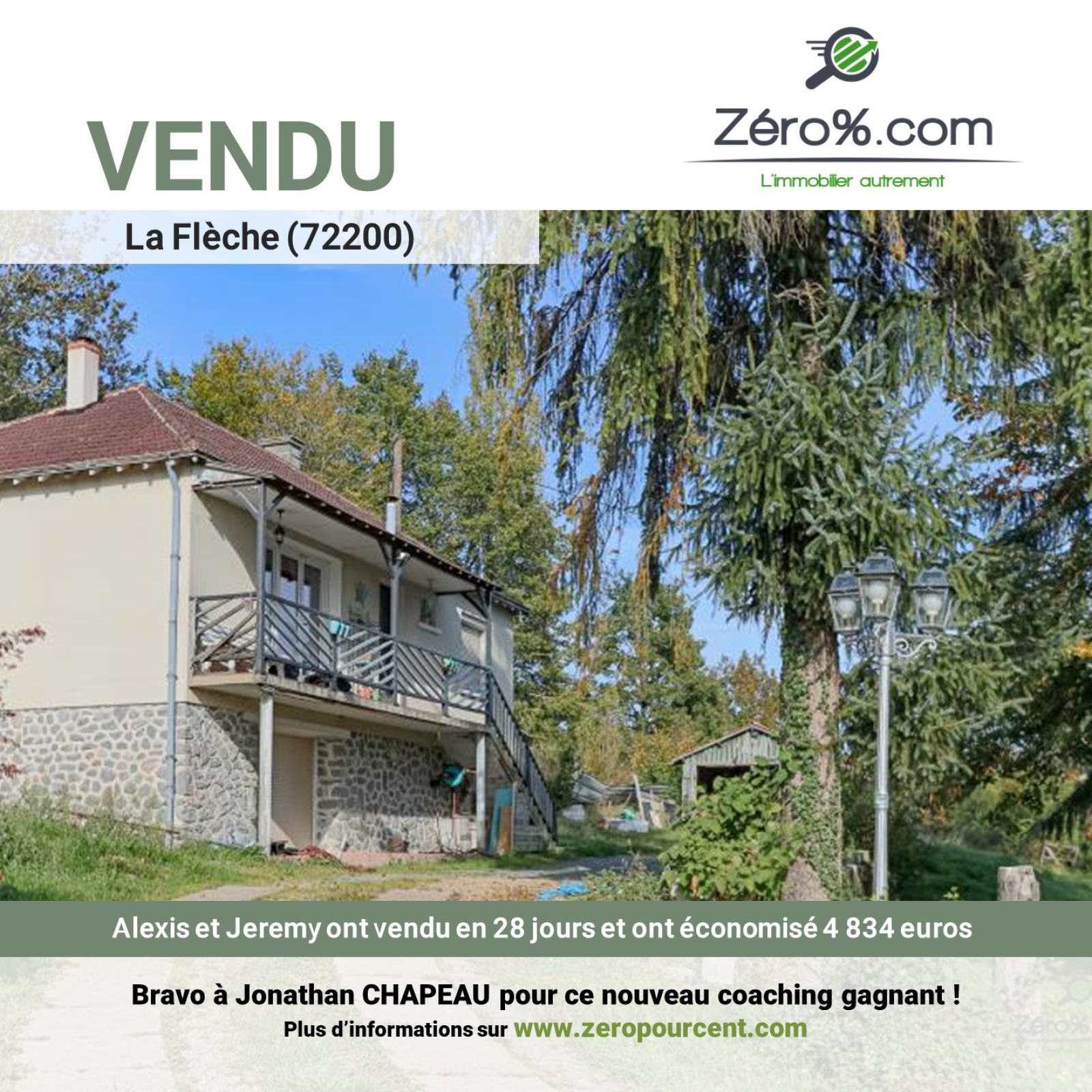 La Flèche (72200)Venez découvrir de Particulier à Particulier ce pavillon situé à seulement 3 minutes du centre de la Flèche, en direction du Mans. La Flèche, commune du sud du département de la Sarthe, est située dans la vallée du Loir, à l'ouest du Maine angevin. Elle se trouve, à vol d'oiseau, à 39 km du Mans, 44 km d'Angers, 66 km de Tours, 66 km de Laval et 220 km de Paris . Vous découvrirez sur une parcelle d’une contenance de 2537 m², cette maison d’habitation comprenant au rez-de-chaussée une suite parentale avec douche à l’italienne , une seconde chambre, et un cellier. Des travaux de rénovation sont à terminer. Direction l’étage, où vous profiterez d’une entrée, d’un salon séjour et cuisine ouverte et équipée de 37 m². Un poêle à bois réchauffera vos soirées froides. Un coin nuit se compose de deux chambres, d’un wc et d’une salle de bains. Construction des années 1980 avec chauffage électrique, double vitrage, volets roulants. Le montant de la taxe foncière s’élève à 790 euros. L’extérieur vous garantira un espace arboré avec piscine enterrée et chauffée de 7mx3m. Un dépendance de 35 m² complète la prestation. Vous souhaitez vendre votre bien, faites comme nous ! Faites appel à votre coach immobilier. Zéropourcent.com démocratise l’immobilier de particulier à particulier en proposant une facturation fixe, quelque soit le prix de votre bien, sans exclusivité, et vous fait profiter d’un coaching gagnant. Zéropourcent.com c’est l’immobilier autrement !