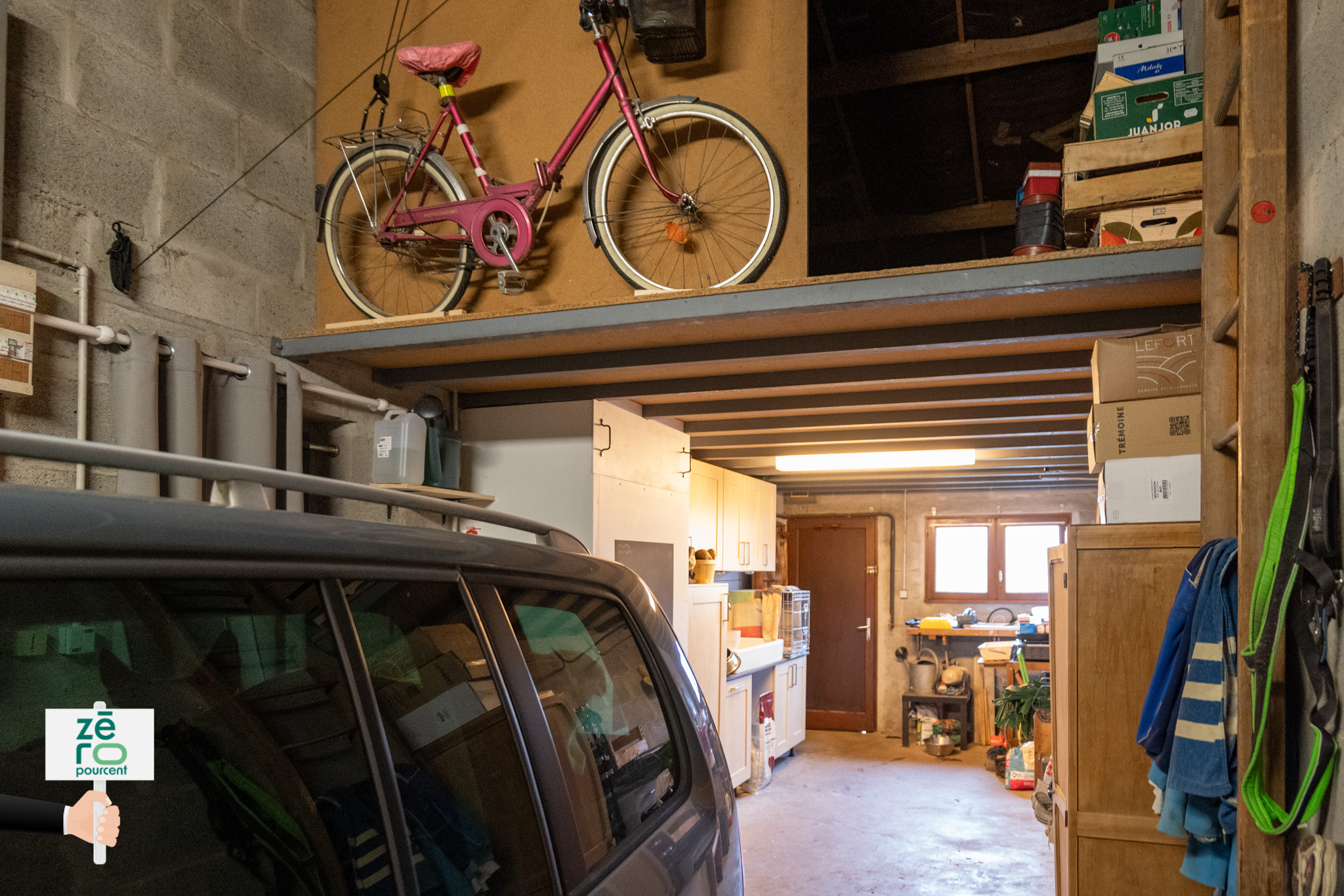 Un garage de 35 m² complète ce bien, avec en sus une Mezzanine de 15 m² offrant un bel espace de rangement et une Arrière-cuisine avec accès direct au jardin.