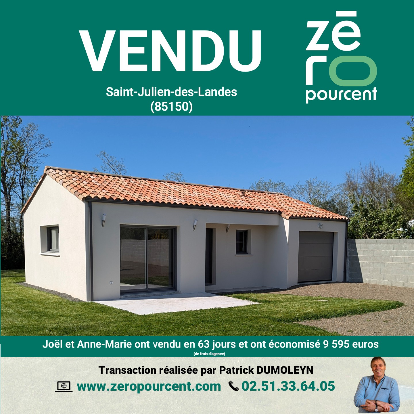 Saint-Julien-des-Landes (85150)Joël et Anne-Marie ont vendu en 63 jours et ont économisé 9 595 euros