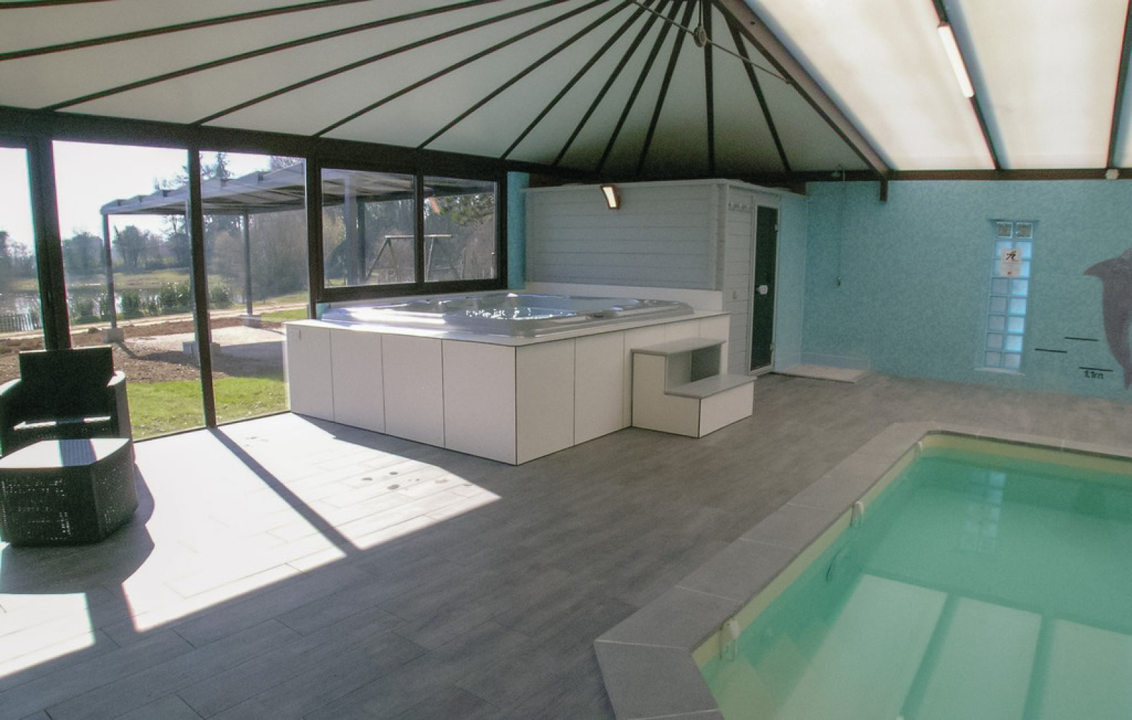 Confort moderne et équipements haut de gamme : Chauffage électrique + deux inserts bois (haut et bas), production d'eau chaude alimentée par la source du puit; Panneaux photovoltaïques générant un revenu annuel d’environ 1 600 €, Une salle détente complète avec : Piscine chauffée 5x10 m sous abri, Spa 7 places, Sauna, Chauffage par pompe à chaleur et déshumidificateur.