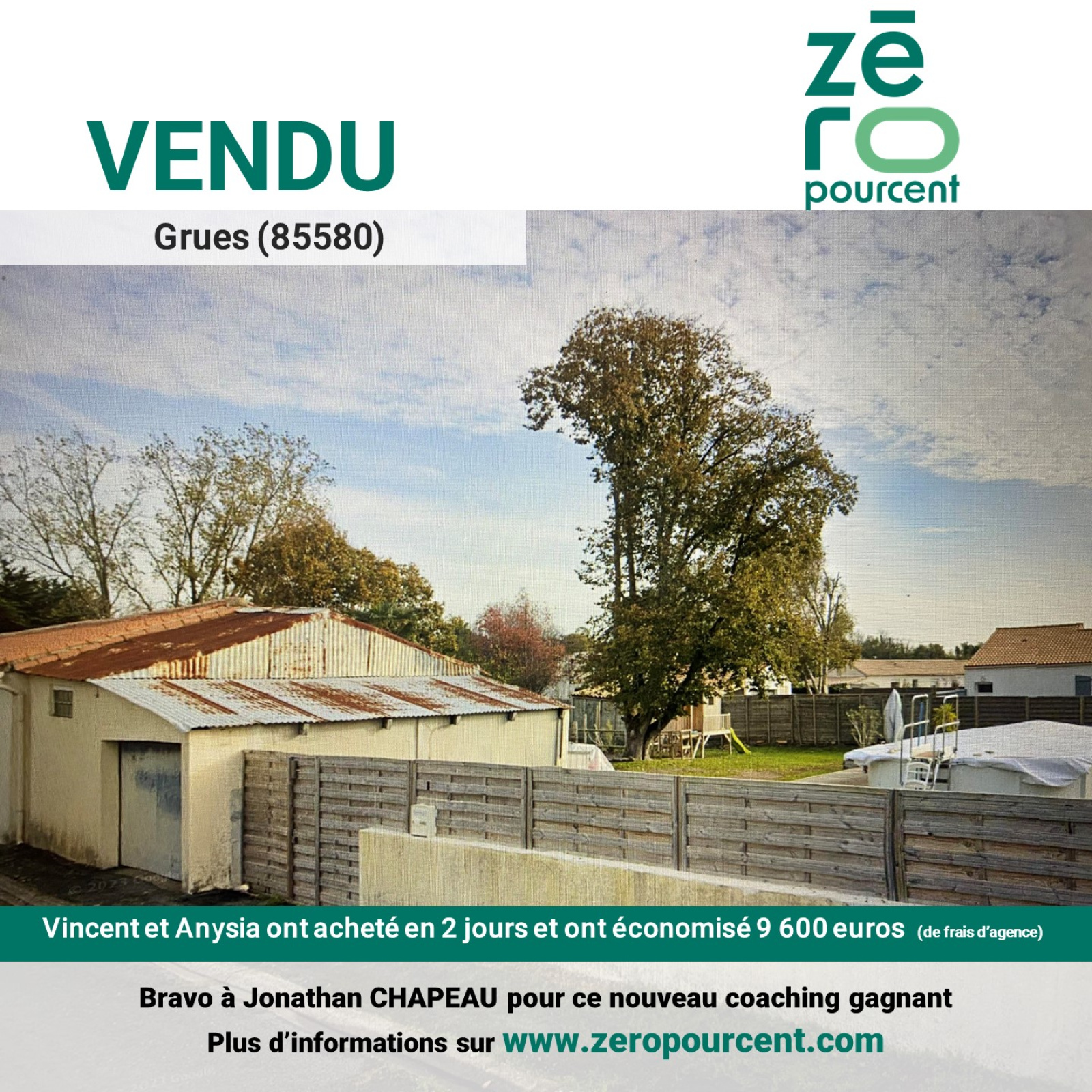 Grues (85580)Vincent et Anysia ont acheté en 2 jours et ont économisé 9 600 euros (de frais d’agence)