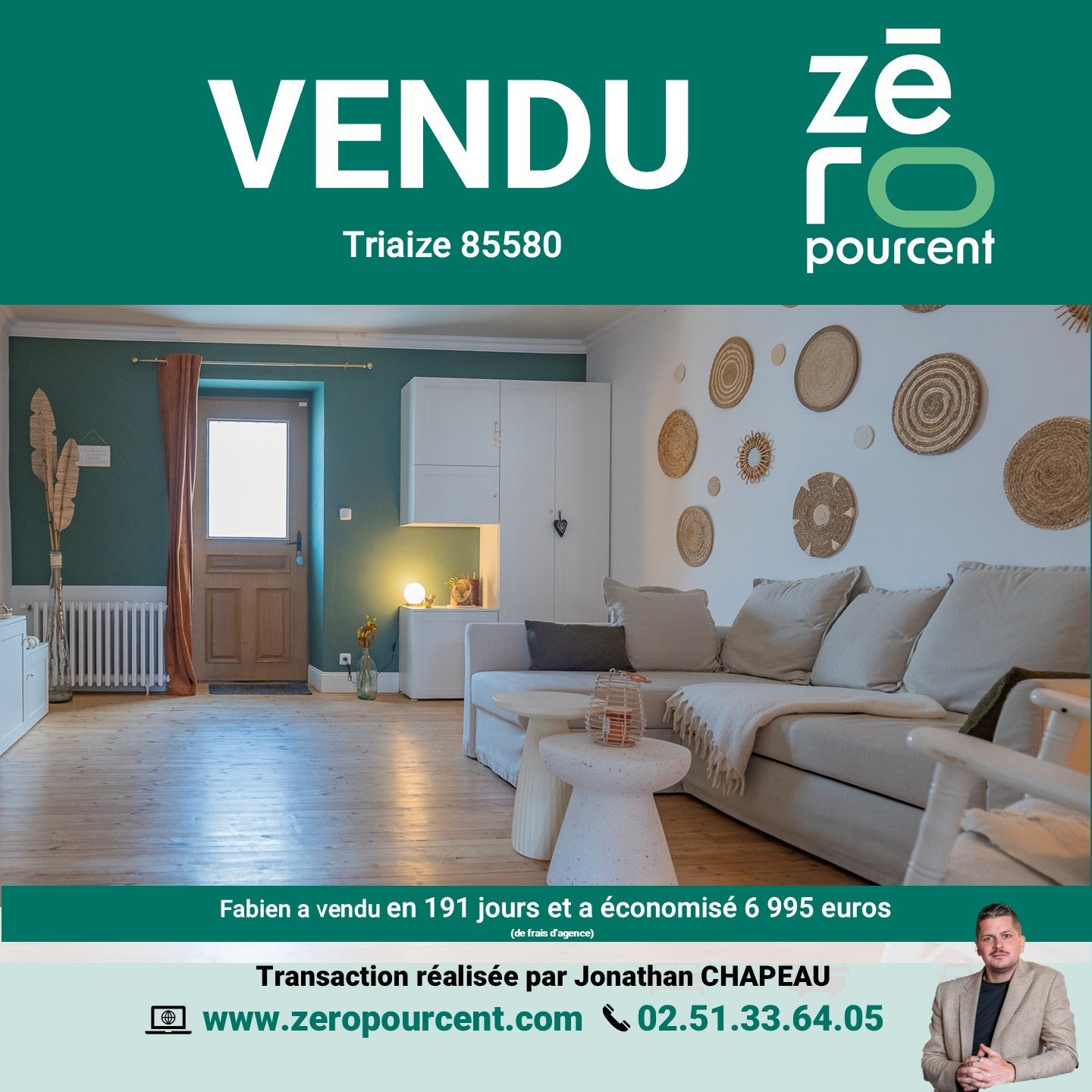 Triaize (85580)Fabien a vendu en 191 jours et a économisé 6 995 euros