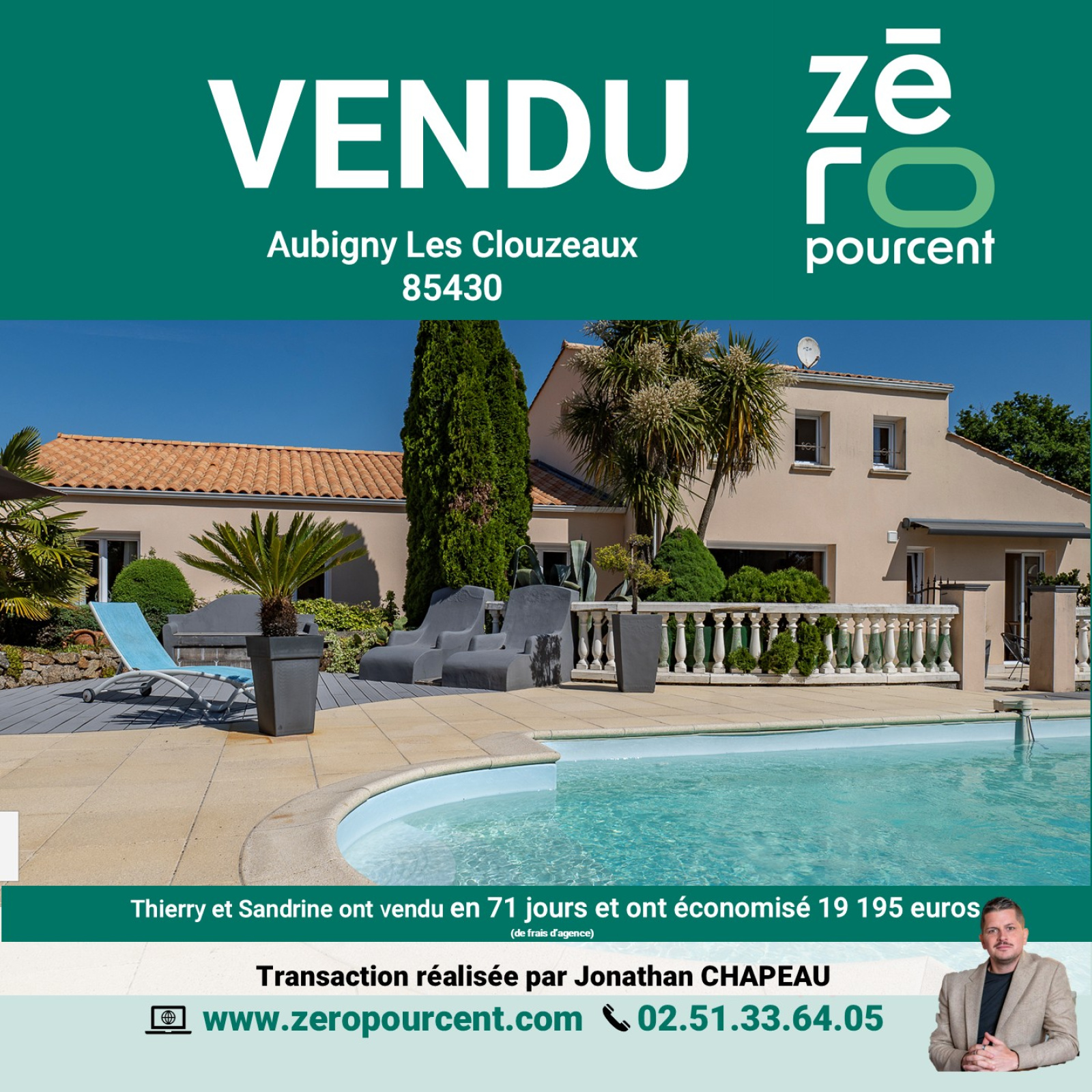 Aubigny Les Clouzeaux (85430)Thierry et Sandrine ont vendu en 71 jours et ont économisé 19 195 euros