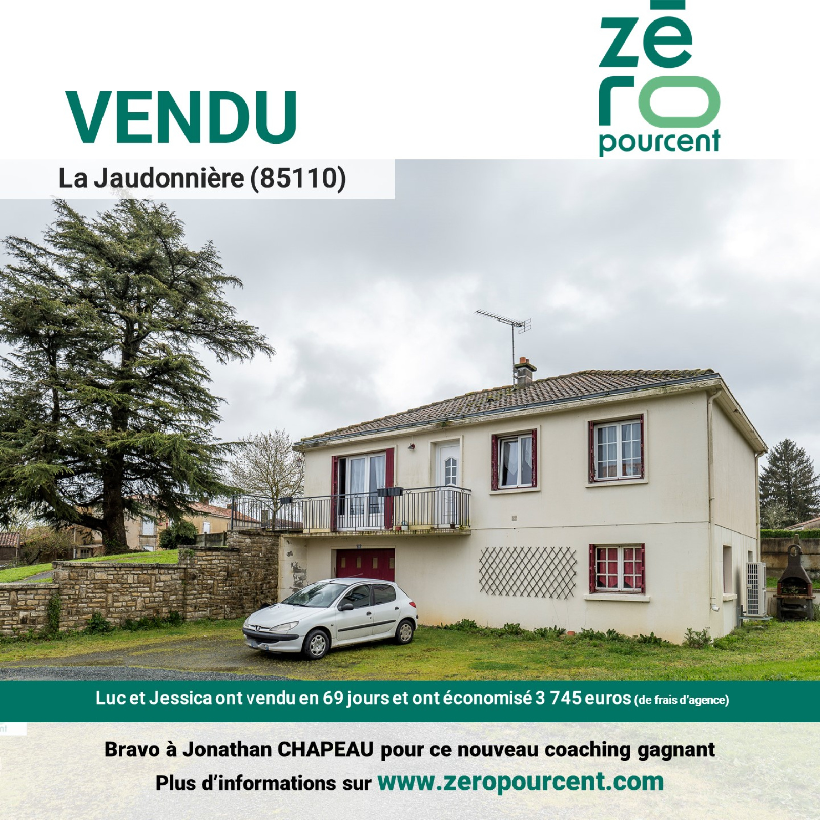 La Jaudonnière (85110)Luc et Jessica ont vendu en 69 jours et ont économisé 3 745 euros (de frais d’agence)
