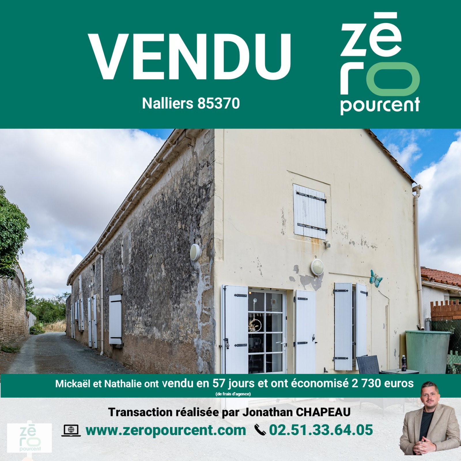Nalliers (85370)Mickaël et Nathalie ont vendu en 57 jours et ont économisé 2 730 euros
