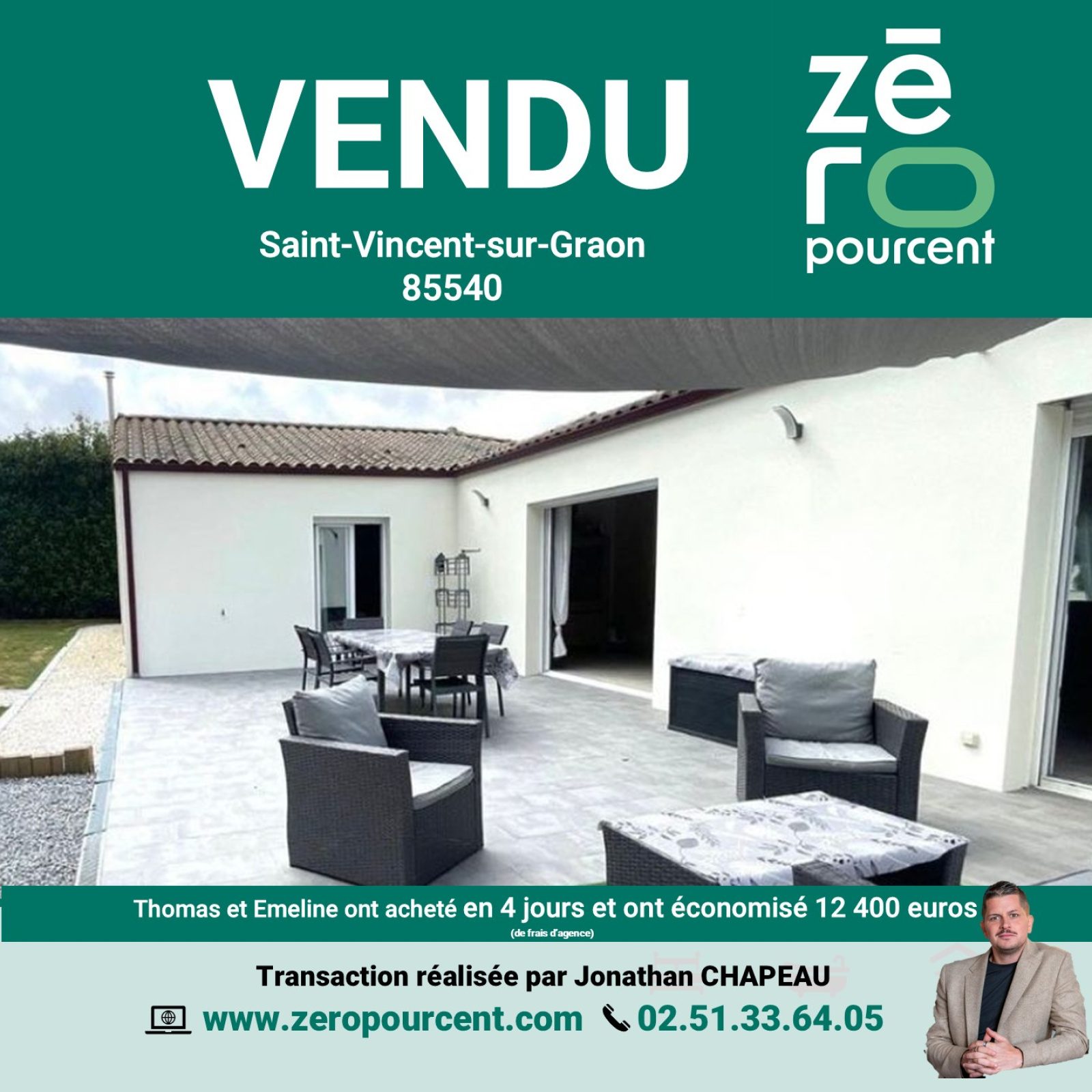 Saint-Vincent-sur-Graon (85540)Thomas et Emeline ont acheté en 4 jours et ont économisé 12 400 euros (de frais d’agence)*