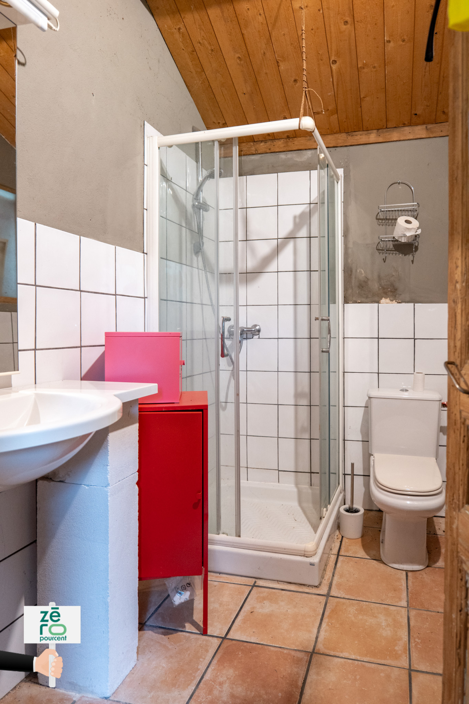 Descriptif intérieur : Entrée accueillante, WC indépendant, Salle d’eau, Séjour / cuisine avec le charme intemporel d’une cheminée à foyer ouvert, Salon cosy sublimé par de superbes carreaux de ciment au sol