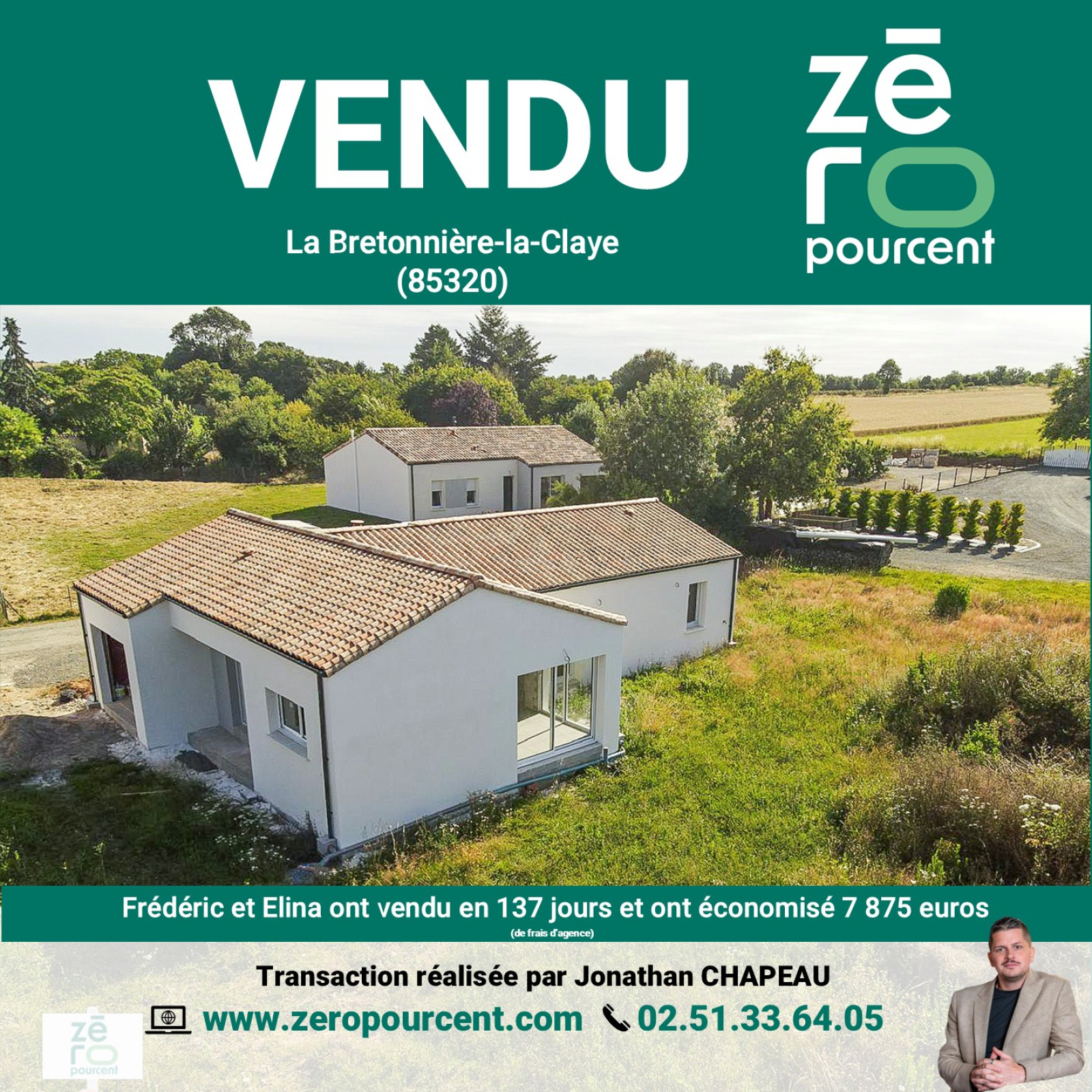 La Bretonnière-la-Claye (85320)Frédéric et Elina ont vendu en 137 jours et ont économisé 7 875 euros