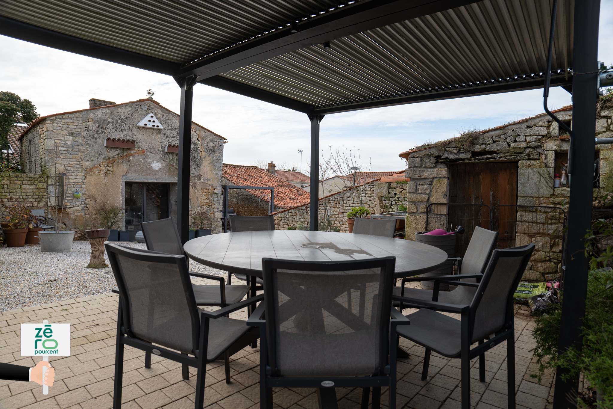 Extérieurs : cour aménagée, pergolas bioclimatiques & dépendances. À l’extérieur, profitez : D’une grande cour aménagée en espace détente, parfaite pour les repas d’été et les moments en famille ; De deux terrasses équipées de pergolas bioclimatiques, sans vis-à-vis ; D’un second garage / atelier attenant à la maison ; D’une dépendance, déjà préparée et offrant un potentiel d’aménagement en logement supplémentaire (investissement locatif, extension familiale, gîte…).