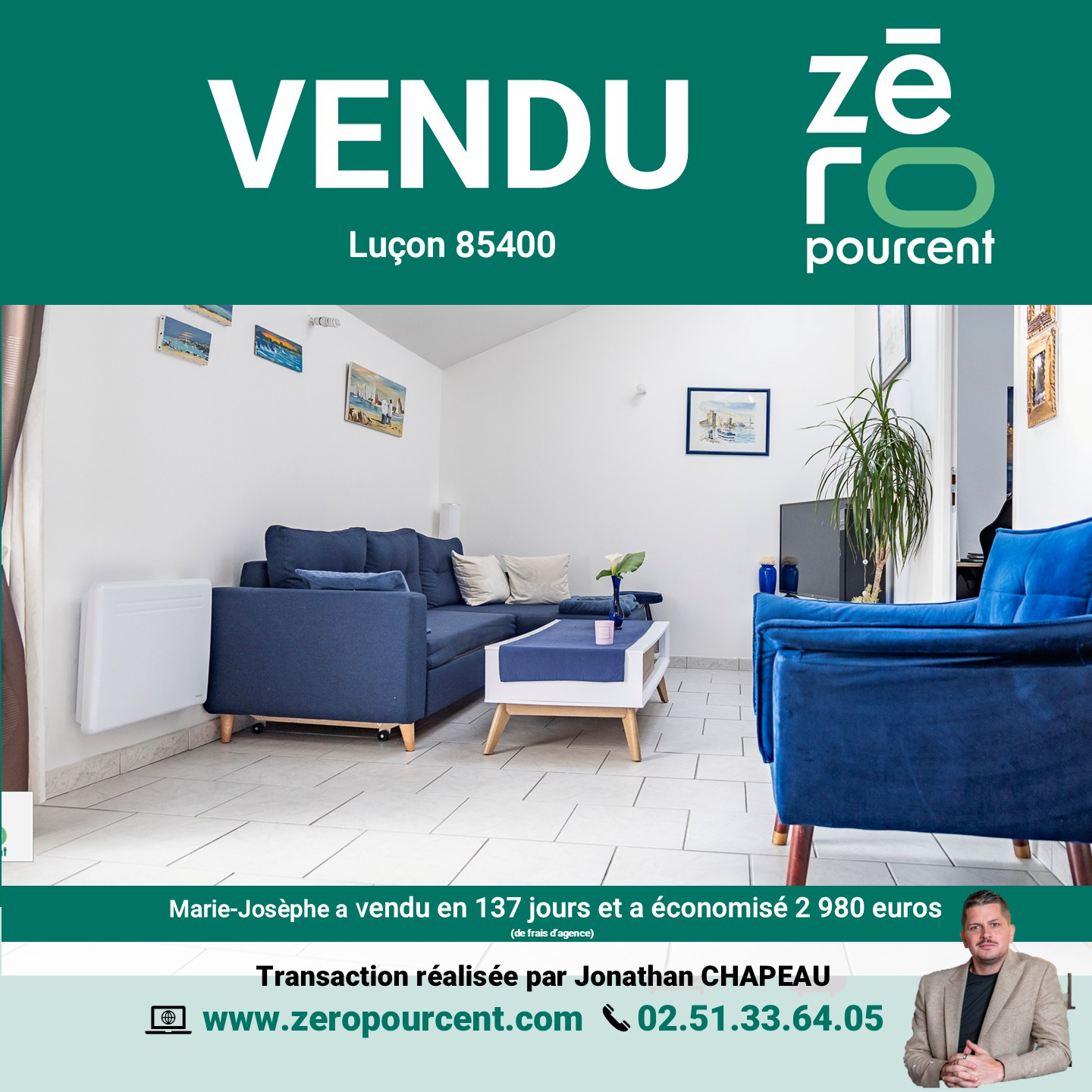 Luçon (85400)Marie-Josèphe a vendu en 137 jours et a économisé 2 980 euros