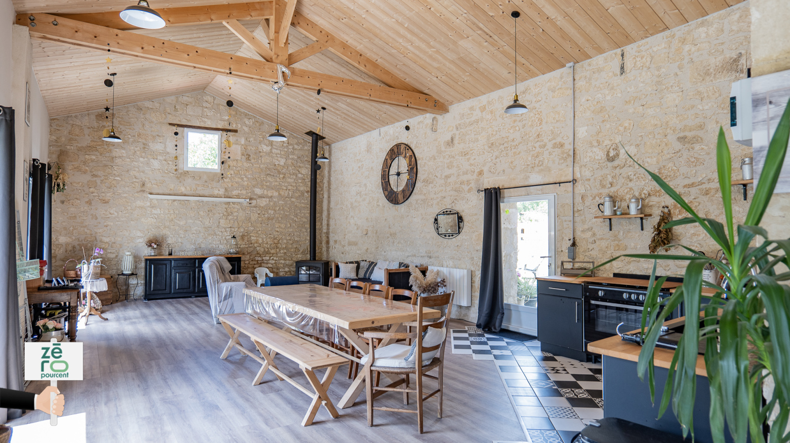 Vous découvrirez une vaste pièce de vie lumineuse de 75 m² et le charme d’un autre poêle à bois. Cette pièce est équipée d’une autre cuisine moderne et tout équipée : C’est la pièce parfaite pour créer un atelier d’artiste, un espace de télétravail, une salle de réception, ou développer une activité professionnelle d’accueil (chambres d’hôtes, location saisonnière, espace bien-être, etc.).